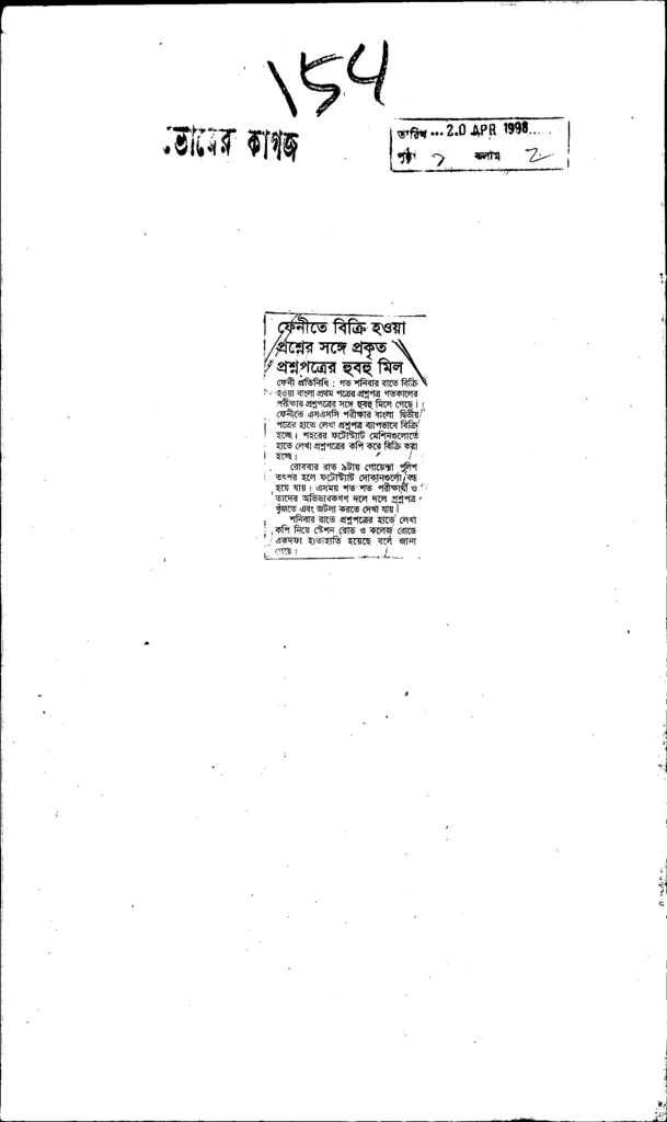 ফেনীতে বিক্রি হওয়া প্রশ্নের সঙ্গে প্রকৃত প্রশ্নপত্রের হুবহু মিল Published on Newspaper দৈনিক ভোরের কাগজ Category Public Examination Public Examination Others Download