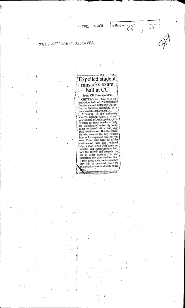 Explled student ransacks exam hall at cu Published on Newspaper The Bangladesh Observer Category Public Examination Public Examination Others Download