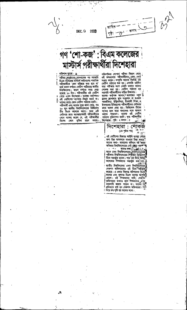 গণ‘শো-কজ‘ বিএম কলেজের মাস্টার্স পরীক্ষার্থীরা দিশেহারা Published on Newspaper দৈনিক যুগান্তর Category Public Examination Public Examination Others Download