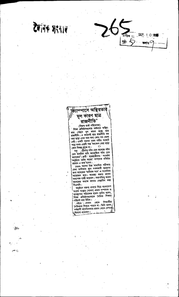 ক্যাম্পাসে অস্থিরতার মুল কারণ চাত্র রাজনীতি Published on Newspaper দৈনিক সংবাদ Category Campus Terrorism Download