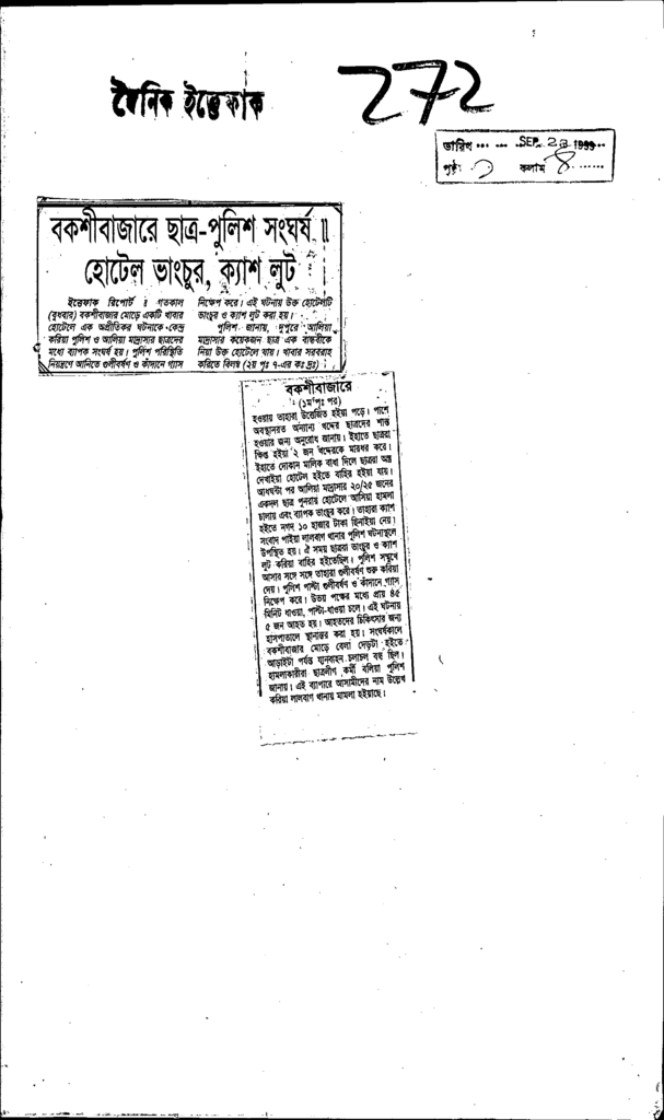বকশীবাজারে ছাত্র পুলিশ সংঘর্ষ হোটেল ভাংচুর ক্যাশ লূট Published on Newspaper দৈনিক ইত্তেফাক Category Campus Terrorism Download