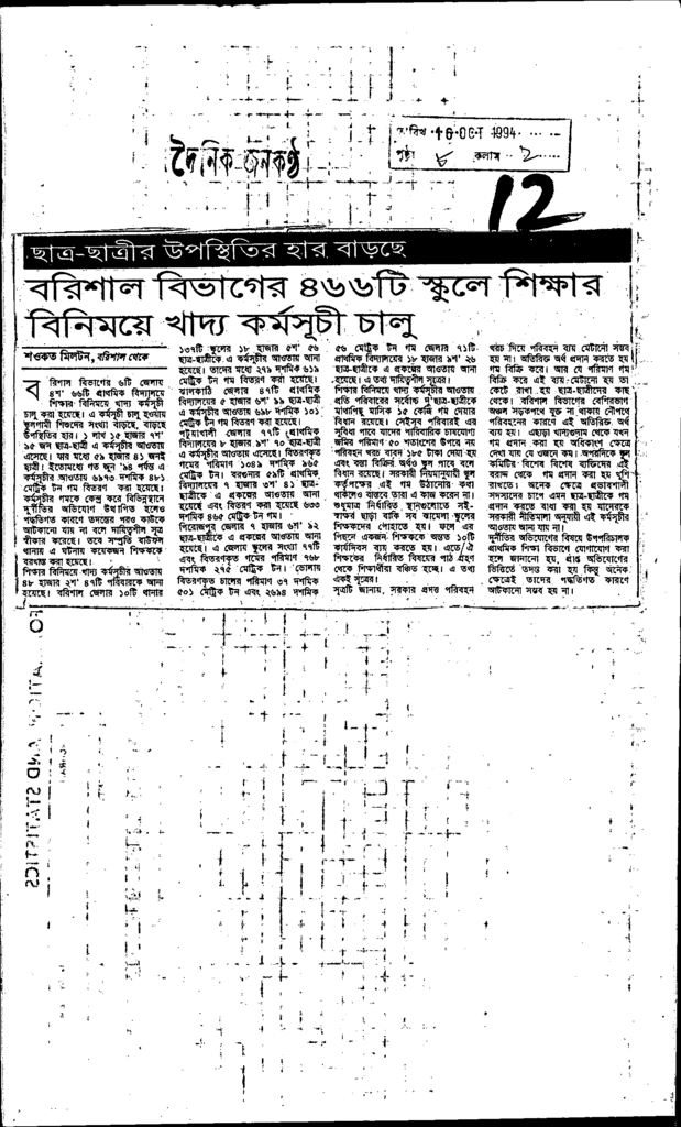 বরিশাল বিভাগের ৪৬৬টি স্কুলে শিক্ষার বিনিময়ে খাদ্য কর্মসূচী চালু Published on Newspaper দৈনিক জনকণ্ঠ Category General Education Download