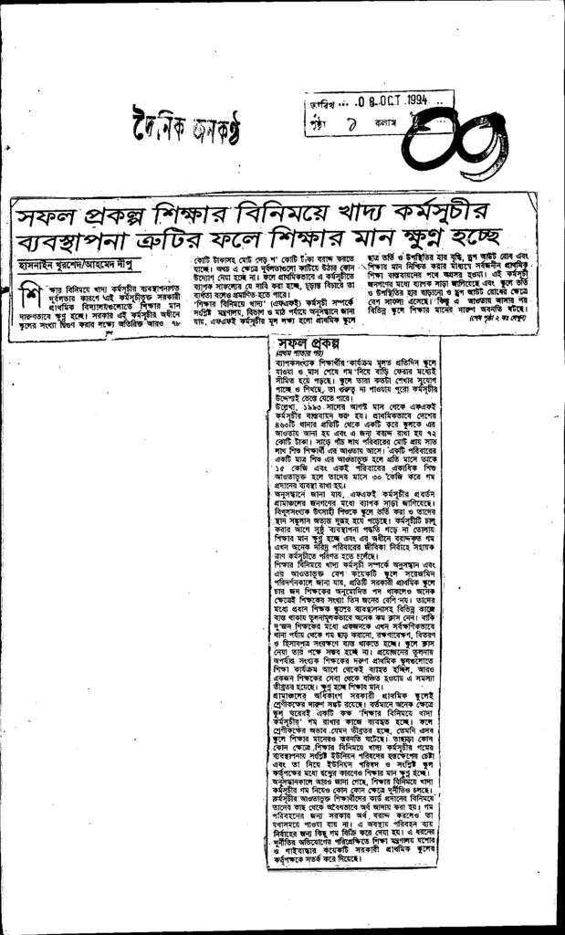 সফল প্রকল্প শিক্ষার বিনিময়ে খাদ্র কর্মসুচীর ব্যবস্থাপনা ক্রটির ফলে শিক্ষার মান ক্ষুণ্ন হচ্ছে Published on Newspaper দৈনিক জনকণ্ঠ Category General Education Download