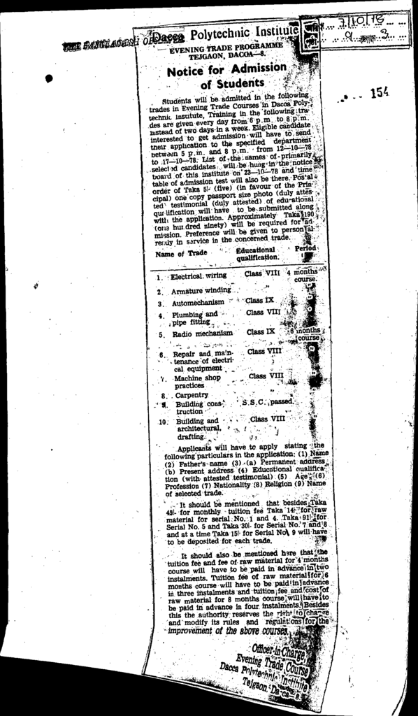 Notics ofr admission of students Published on Newspaper The Bangladesh Times Category General Education Download