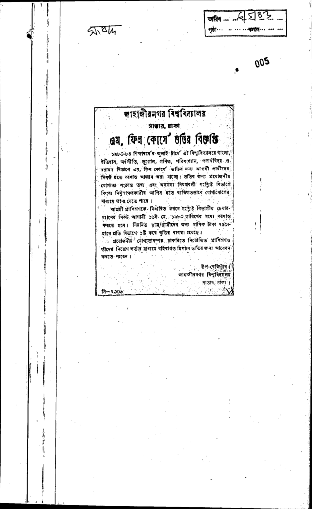 জাহাঙ্গীরনগন বিশ্ববিদ্যালয় এম ফিল কোর্সে ভর্তি Published on Newspaper দৈনিক সংবাদ Category General Education Download