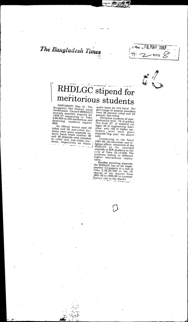 Rhdlgc stipend for meritorious students Published on Newspaper The Bangladesh Times Category General Education Download