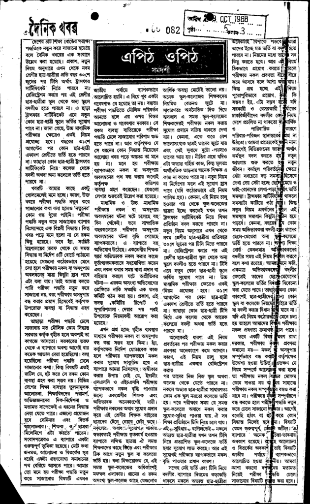 এপিঠ ওপিঠ Published on Newspaper দৈনিক খবর Category Admission / Seat Problem Admission/Seat Problem Download