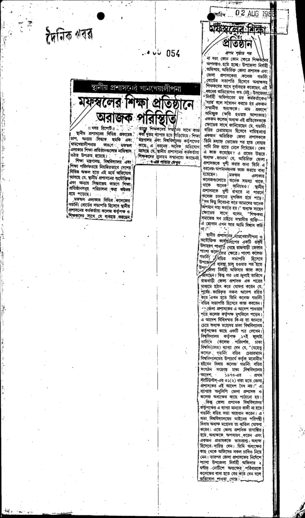 মফস্বলের শিক্ষা প্রতিষ্ঠানে অরাজক পরিস্থিতি Published on Newspaper দৈনিক খবর Category Admission / Seat Problem Admission/Seat Problem Download