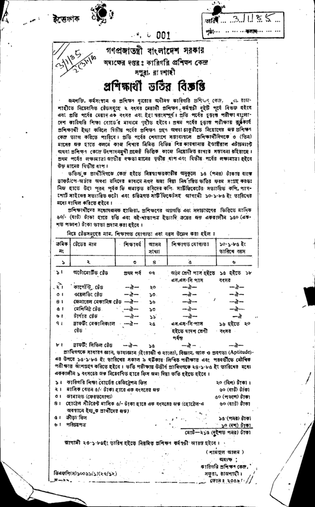 গনপ্রজাতন্ত্রী বাংলাদেশ সরকার Published on Newspaper দৈনিক ইত্তেফাক Category Admission / Seat Problem Download