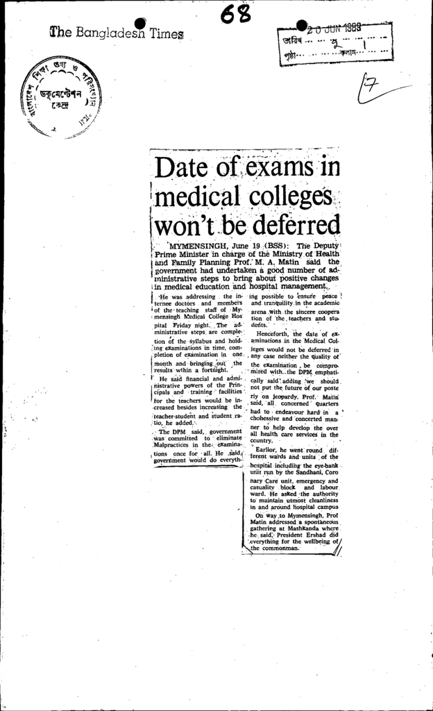 Date of exams in medical colleges won't be deferred Published on Newspaper The Bangladesh Times Category Madrasah Education Madrasah Education Alia Download