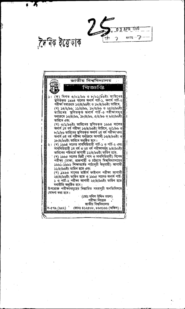 জাতীয় বিশ্ববিদ্যালয় বিজ্ঞপ্তি