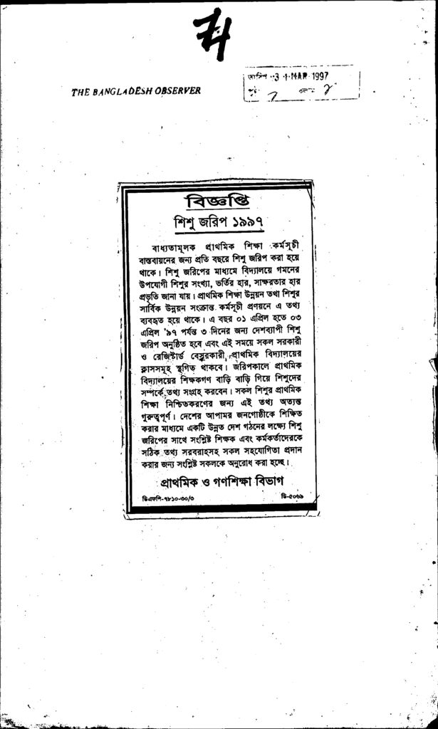 বিজ্ঞপ্তি শিশু জরিপ ১৯৯৭
