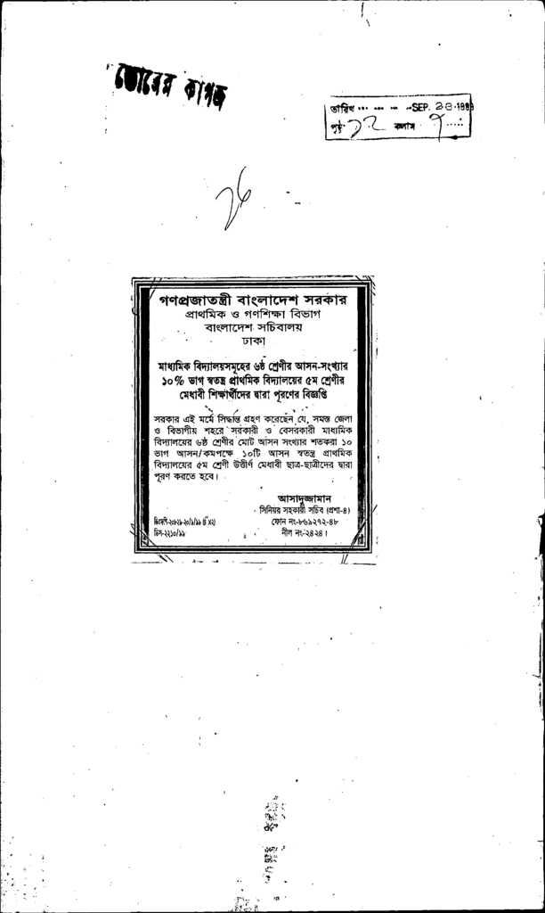 গণপ্রজাতন্ত্রী বাংলাদেশ সরকার প্রাথমিক ও গনশিক্ষা বিভাগ বাংলাদেশ সচিবালয় ঢাকা Published on Newspaper দৈনিক ভোরের কাগজ Category Others Download