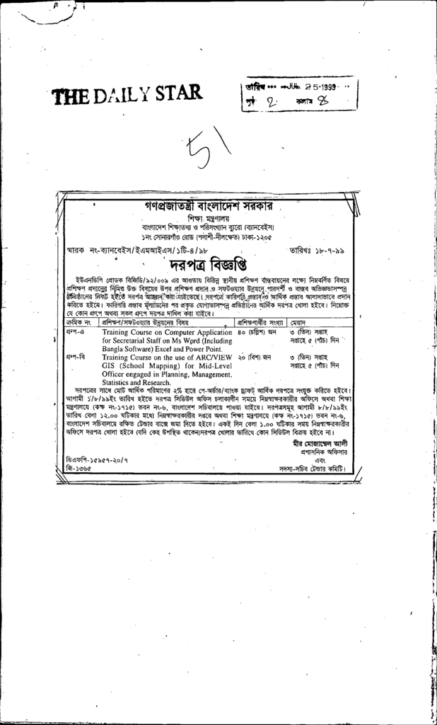 গনপ্রজাতন্ত্রী বাংলাদেশ সরকার দরপত্র বিজ্ঞপ্তি