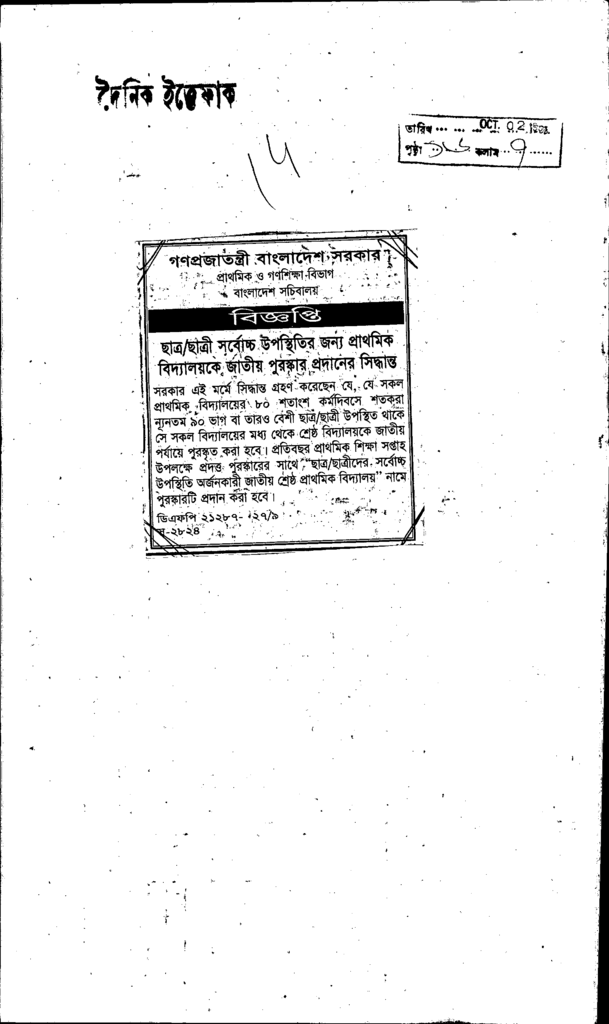 গনপ্রজাতন্ত্রী বাংলাদেশ সরকার বিজ্ঞপ্তি Published on Newspaper দৈনিক ইত্তেফাক Category Others Download