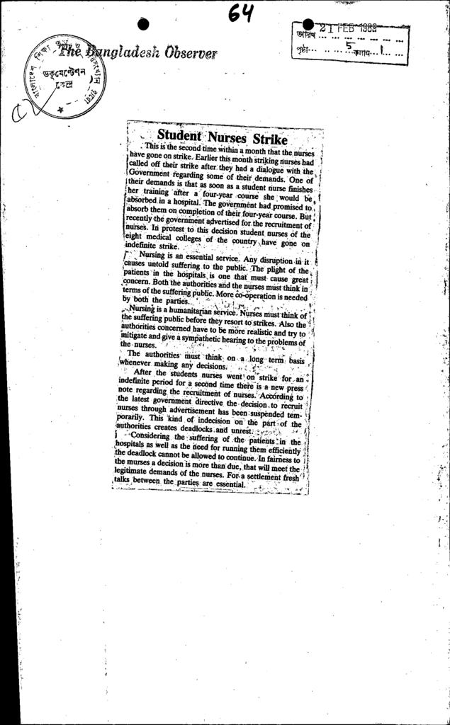 Student nurses strike Published on Newspaper The Bangladesh Observer Category Madrasah Education Madrasah Education Alia Download