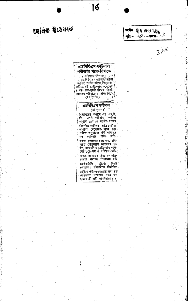 এমবিবিএস ফাইনাল পরীক্ষার পক্ষে বিপক্ষে