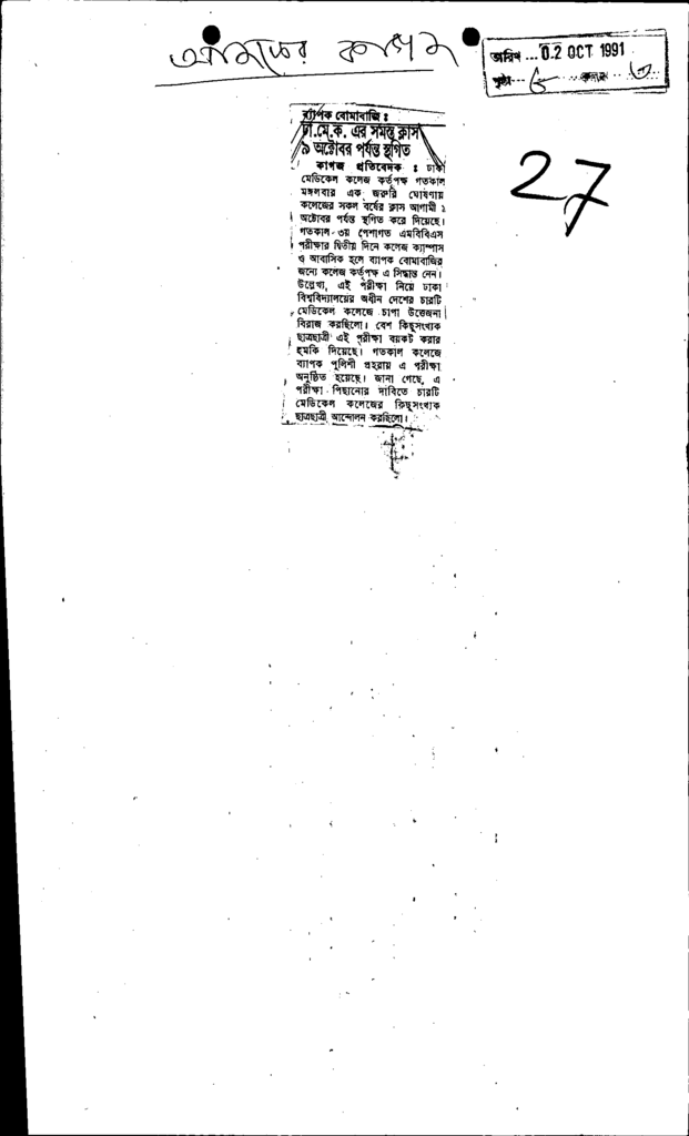 ঢা.মে.ক.এর সমস্ত ক্লাস ৯ অক্টোবর পর্যন্ত স্থগিত Published on Newspaper দৈনিক আজকের কাগজ Category Admission / Seat Problem Admission/Seat Problem Download