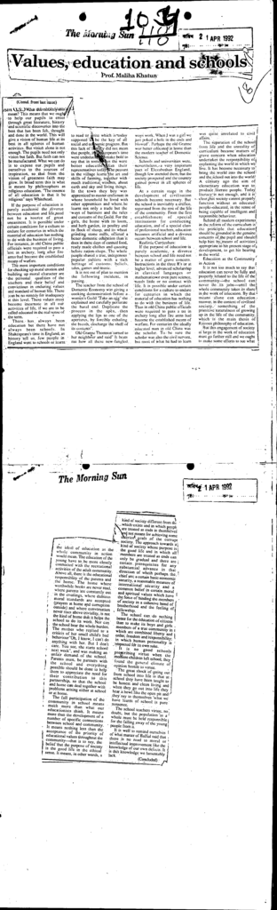 Values, education and schools Published on Newspaper The morning sun Category Admission / Seat Problem Admission/Seat Problem Download