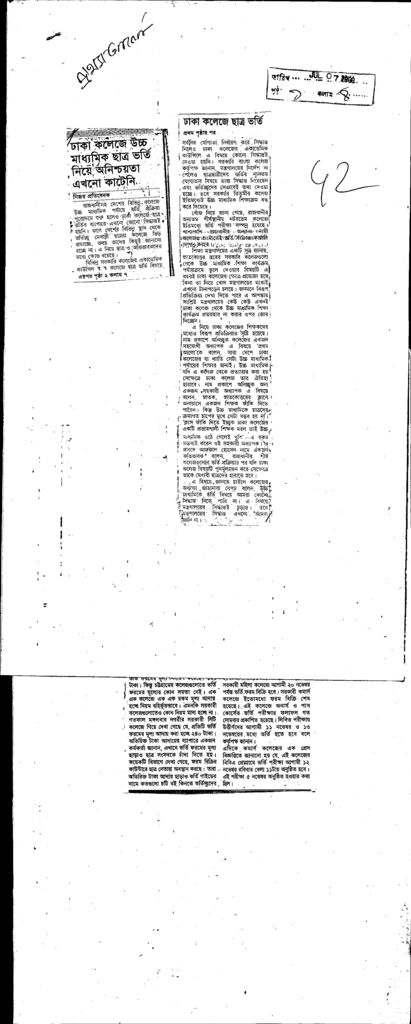 ঢাকা কলেজে উচ্চ মাধ্যমিক ছাত্র ভর্তি নিয়ে অনিশ্চয়তা এখনো কাটেনি Published on Newspaper দৈনিক প্রথম আলো Category Admission / Seat Problem Admission/Seat Problem Download