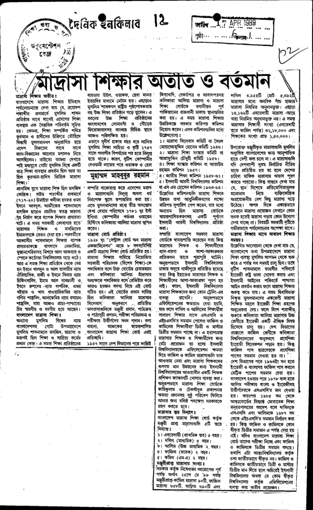 মাদ্রাসা শিক্ষার অতীত ও বর্তমান Published on Newspaper দৈনিক ইনকিলাব Category Madrasah Education Madrasah Education Alia Download
