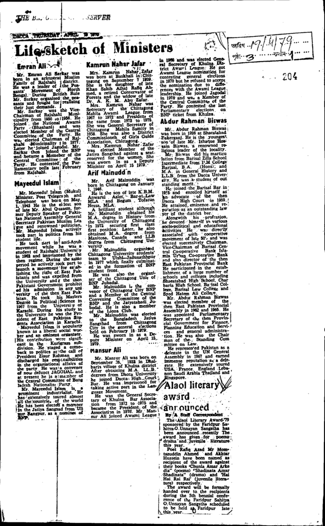 Life skecth of ministers Published on Newspaper The Bangladesh Observer Category General Education Download