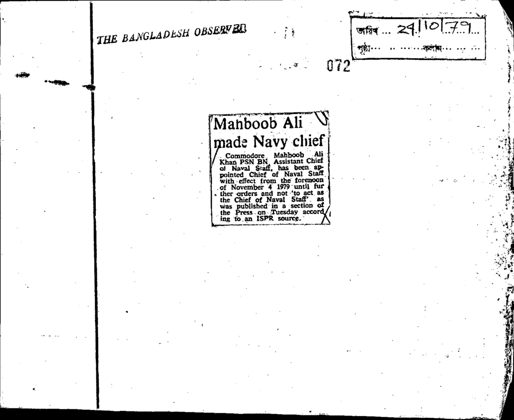 Mahboob ali made navy chief Published on Newspaper The Bangladesh Observer Category General Education Download