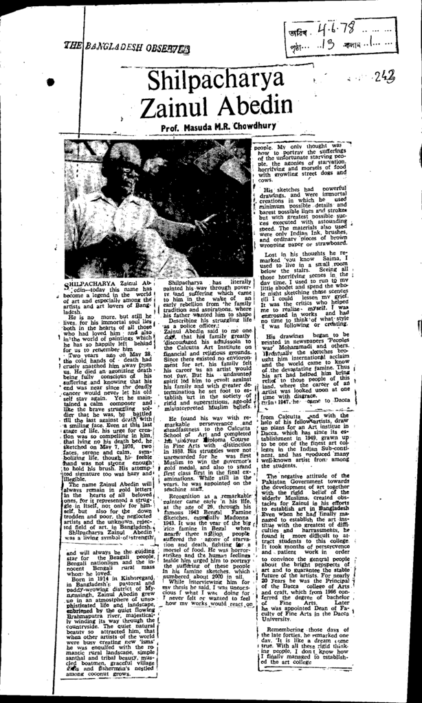 Shilpacharya zainul abedin Published on Newspaper The Bangladesh Observer Category General Education Download
