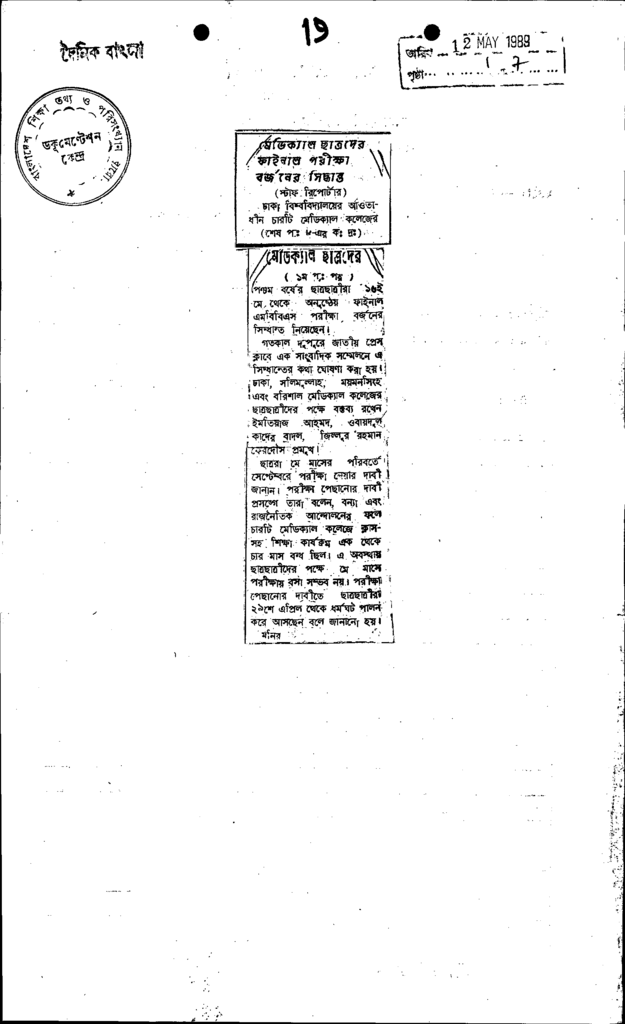 মেডিক্যার চাত্রদের ফাইনাল পরীক্ষা বর্জনের সিদ্ধান্ত Published on Newspaper দৈনিক বাংলা Category Madrasah Education Madrasah Education Alia Download