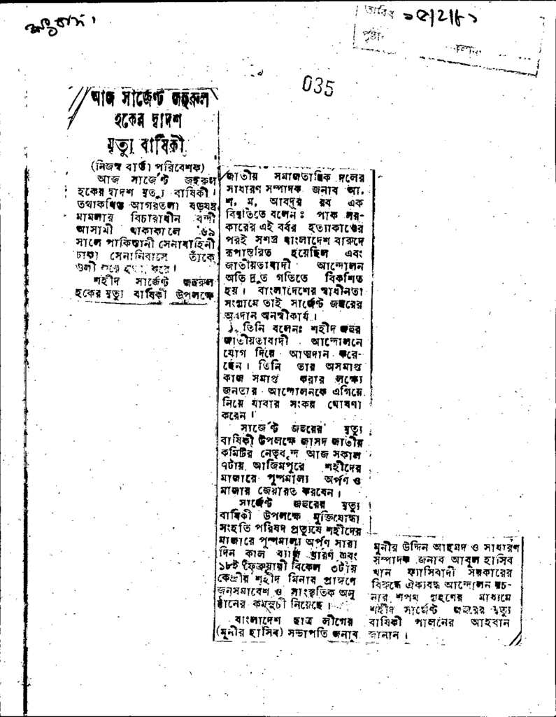 আজ সাজেন্ট জহুরুল হকের দ্বাদশ মৃত্যু বার্ষিকী Published on Newspaper দৈনিক সংবাদ Category General Education Download