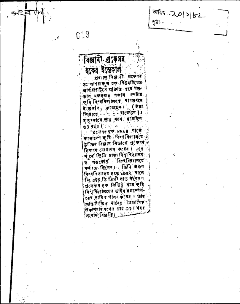 বিঞ্জানী প্রফেসর হকের ইন্তেকাল Published on Newspaper দৈনিক সংবাদ Category General Education Download