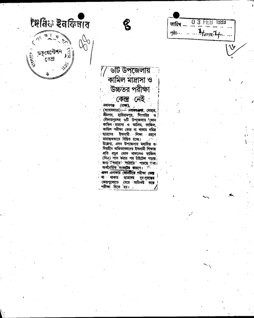 ৬টি উপজেলায় কামিল মাদ্রাসা ও উচ্চহর পরীক্ষ কেন্দ্র নেই Published on Newspaper দৈনিক ইনকিলাব Category Madrasah Education Madrasah Education Alia Download