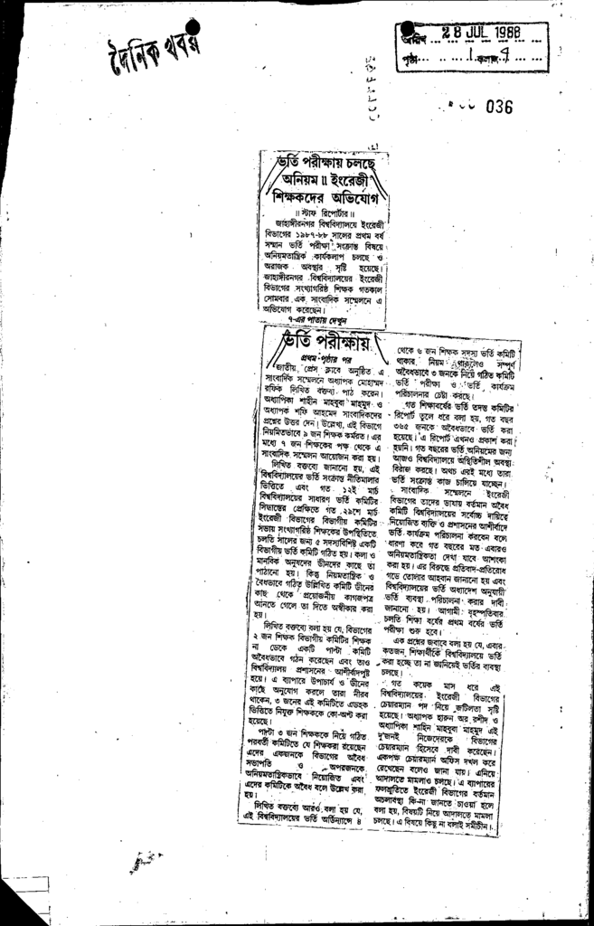 ভর্তি পরীক্ষায় চলছে অনিয়ম।। ইংরেজী শিক্ষকদের অভিযোগ Published on Newspaper দৈনিক খবর Category Admission / Seat Problem Admission/Seat Problem Download