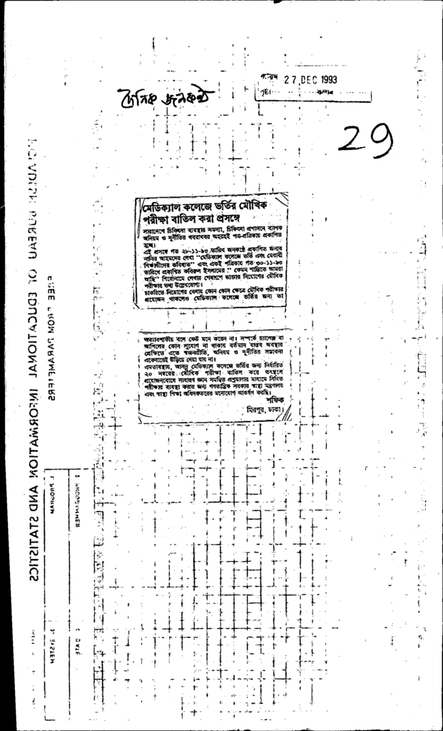 মেডিক্যাল কলেজে ভর্তির মৌখিক পরীক্ষা বাতিল করা প্রসঙ্গে