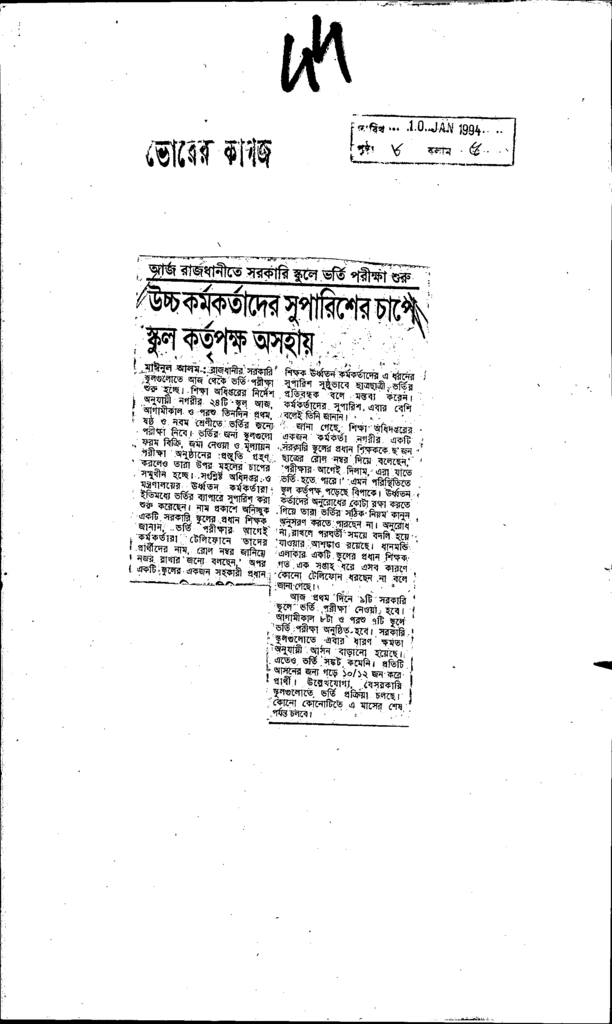 উচ্চকর্মকর্তাদের সুপারিশের চাপে স্কুল কর্তৃপক্ষ অসহায় Published on Newspaper দৈনিক ভোরের কাগজ Category Admission / Seat Problem Admission/Seat Problem Download
