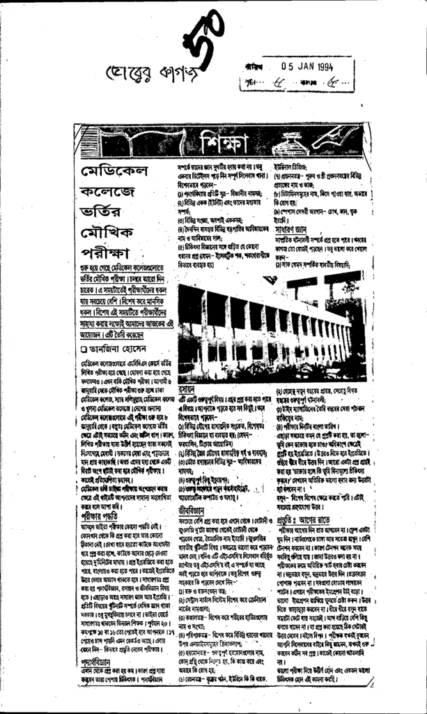 মেডিকেল কলেজে ভর্তির মৌখিক পরীক্ষা Published on Newspaper দৈনিক ভোরের কাগজ Category Admission / Seat Problem Admission/Seat Problem Download