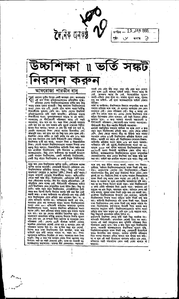 উচ্চশিক্ষা।। ভর্তি সঙ্কট নিরসন করুন Published on Newspaper দৈনিক জনকণ্ঠ Category Admission / Seat Problem Admission/Seat Problem Download