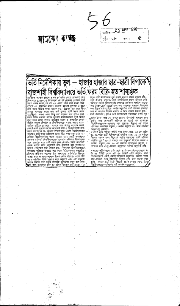 ভর্তি নির্দেশিকায় ভুল -হাজার হাজার ছাত্র -ছাত্রী বিপাকে রাজশাহী বিশ্ববিদ্যালয়ে ভর্তি ফরম বিক্রি হতামাব্যঞ্জক Published on Newspaper দৈনিক আজকের কাগজ Category Admission / Seat Problem Admission/Seat Problem Download