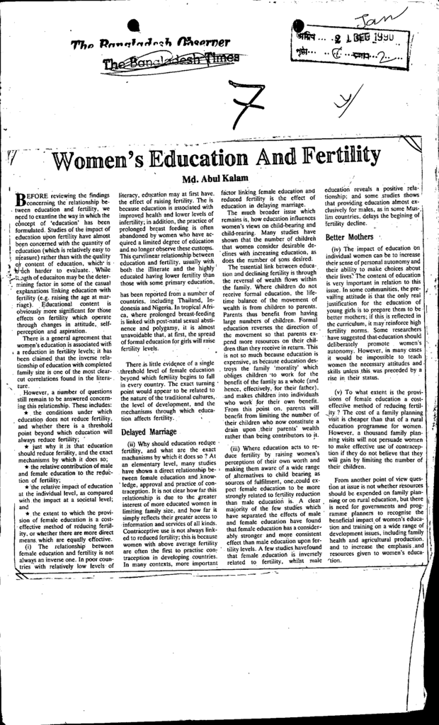 Women's education and fertility Published on Newspaper The Bangladesh Observer Category Women Education Download