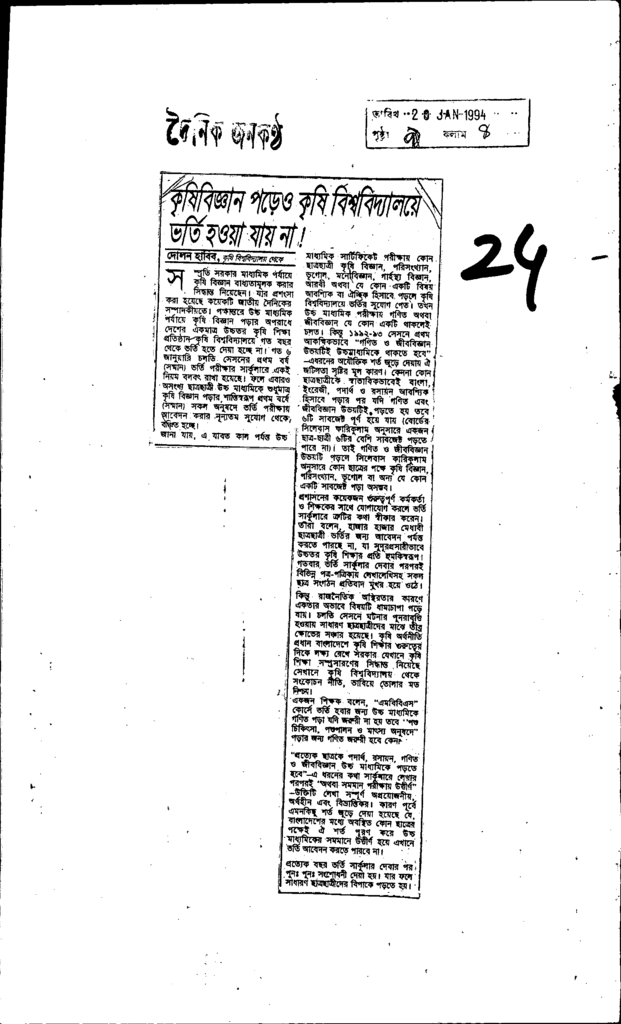 কৃষিবিজ্ঞান পড়েও কৃষি বিশ্ববিদ্যালয়ে ভর্তি হওয়া যায় না! Published on Newspaper দৈনিক জনকণ্ঠ Category General Education General Education Higher Education Public Download