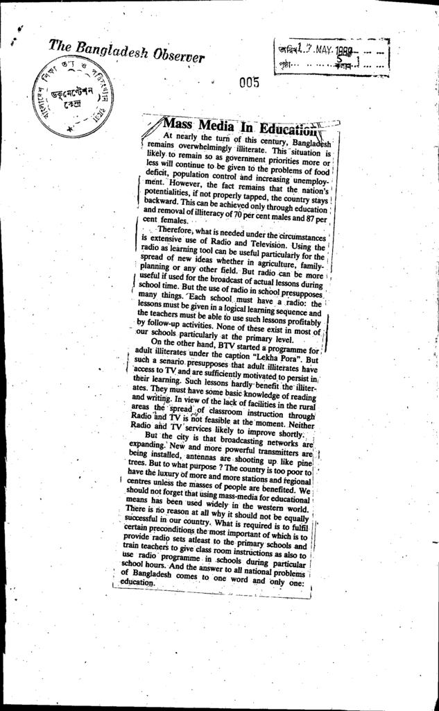 Mass media in education Published on Newspaper The Bangladesh Observer Category General Education General Education Higher Education Public Download