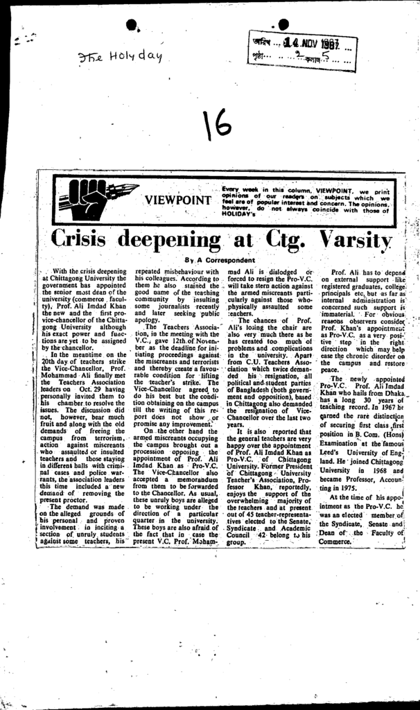 Crisis deepening at ctg. varsity Published on Newspaper The Holiday Category General Education General Education Higher Education Public Download