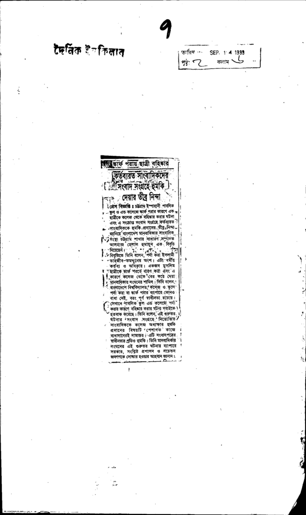 কর্তব্যরত সাংবাদিকদের সংবাদ সংগ্রহে হুমকি দেয়ার তীব্র নিন্দা
