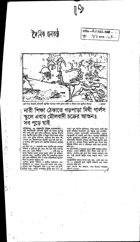 নারী শিক্ষা ঠেকাতে গড় পাড়া দিঘী গার্লস স্কুলে এবার মৌলবাদ চক্রের আগুন Published on Newspaper দৈনিক জনকণ্ঠ Category Women Education Download