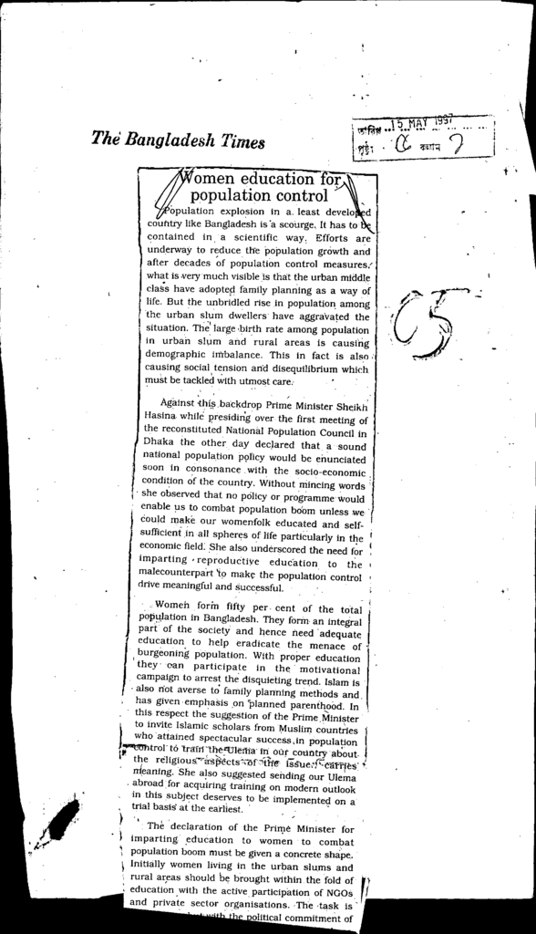 Women education for population control