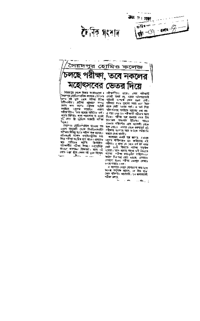 সৈয়দপুর হোমিও কলেজঃ চলছে পরীক্ষা, তবে নকলের মহোৎসবের ভেতর দিয়ে Published on Newspaper দৈনিক সংবাদ Category Professional Education Professional Education Medical Download