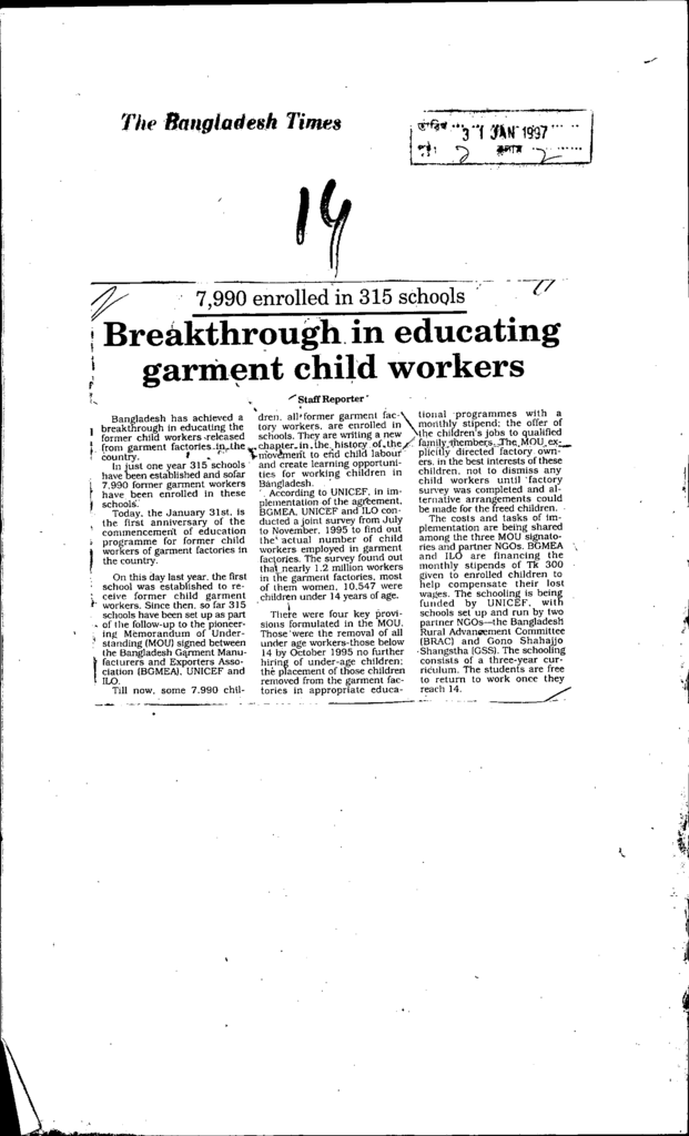 Bvreakthrough in education garment child workers Published on Newspaper The Bangladesh Times Category Child Education Download