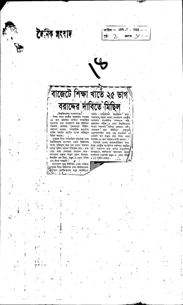 বাজেটে শিক্ষা খাতে ২৫ ভাগ বরাদ্দের দাবিতে মিছিল Published on Newspaper দৈনিক সংবাদ Category Others Download