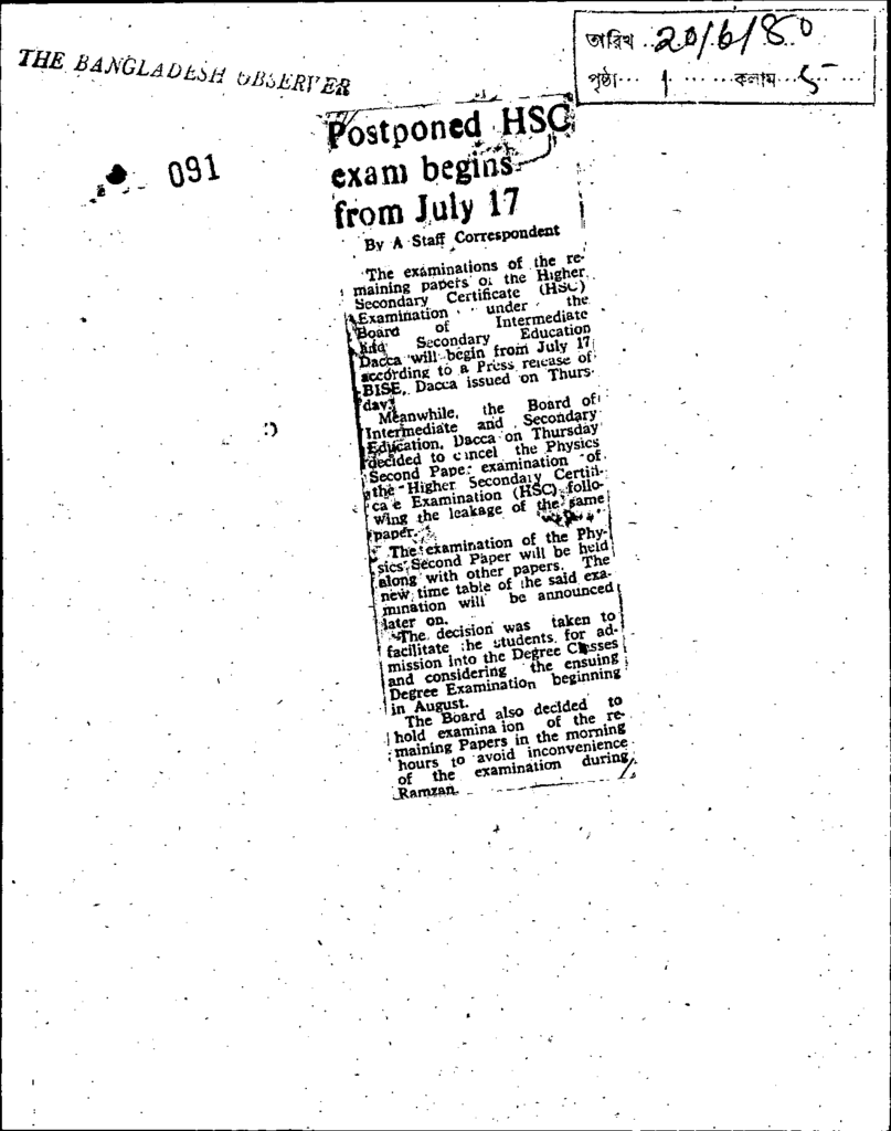 Postponed hsc exam begins from july 17 Published on Newspaper The Bangladesh Observer Category Educational Survey Download