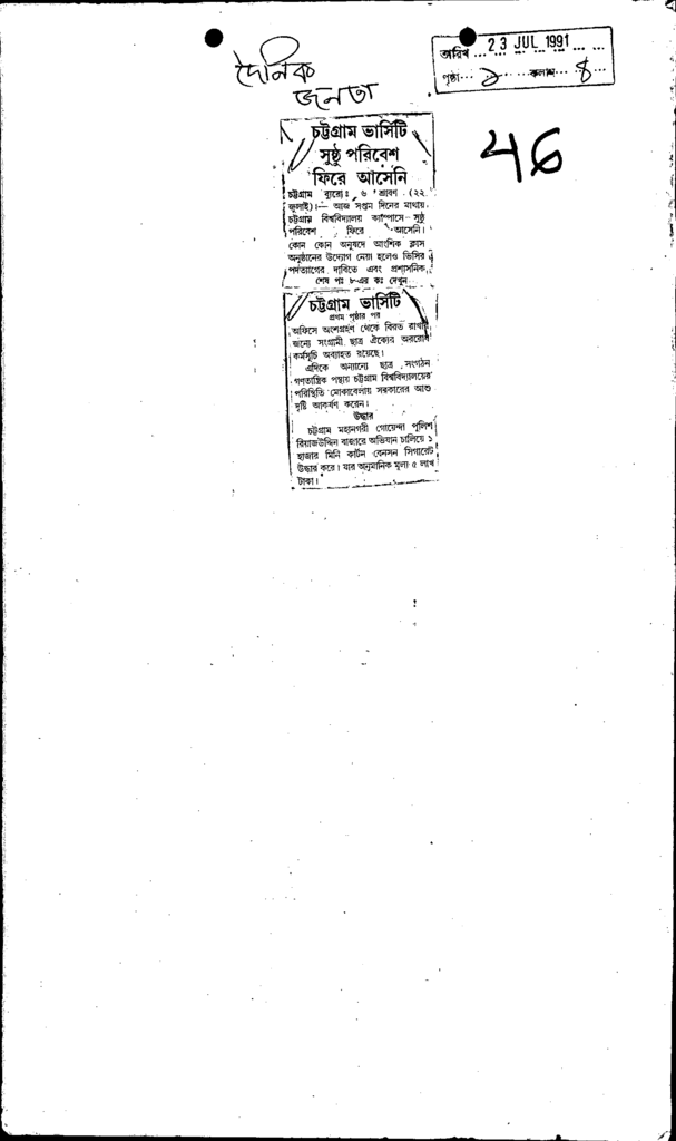 চট্টগ্রাম ভার্সিটি সুষ্ঠু পরিবেশ ফিরে আসেনি Published on Newspaper দৈনিক জনতা Category General Education General Education Higher Education Public Download